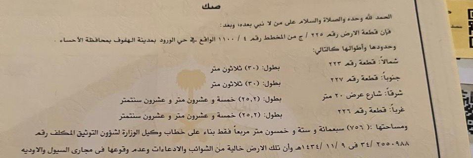 قطعة ارض سكنية للبيع في مخطط الورود الشرقي بالهفوف