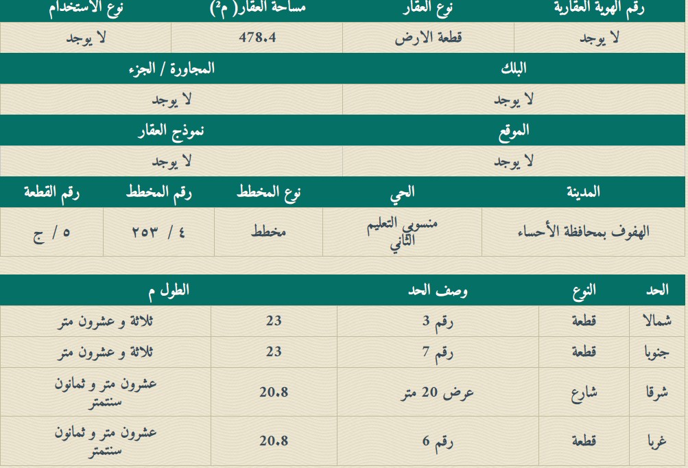 للبيع قطعة أرض سكنية في جنوب منسوب التعليم بالهفوف
