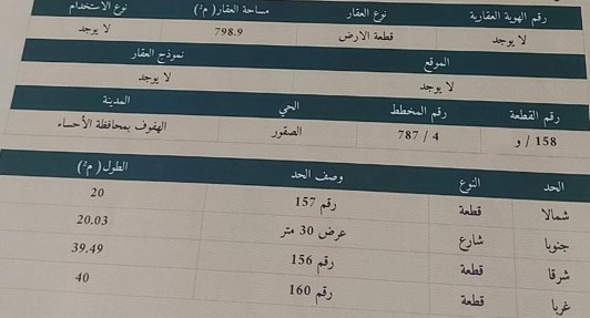 للبيع قطعة أرض سكنية في حي الصقور بالهفوف
